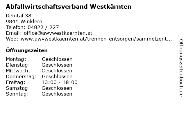 Branchen & Suchbegriffe zu Abfallwirtschaftsverband Westkärnten:abfallentsorgung, abfallverwertung, abfallwirtschaftsverband, sammelzentrum, umweltdienst, westkärnten |