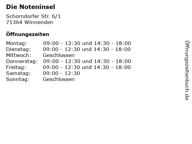 | Öffnungszeiten Die Noteninsel in Winnenden anzeigen | |