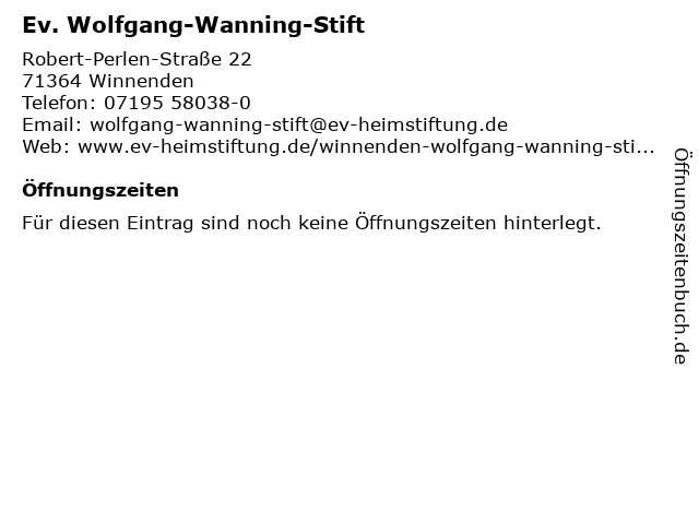 | Öffnungszeiten Ev. Wolfgang-Wanning-Stift in Winnenden anzeigen | |