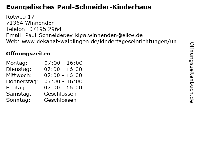 1 Paul-Schneider-Haus Winnenden - Evangelische Kirchengemeinde Winnenden (Entfernung: 0,02 km) Rotweg 15, 71364 Winnenden 6 |