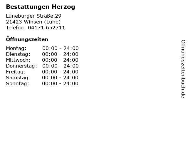 | Öffnungszeiten Bestattungen Herzog in Winsen (Luhe) anzeigen | |