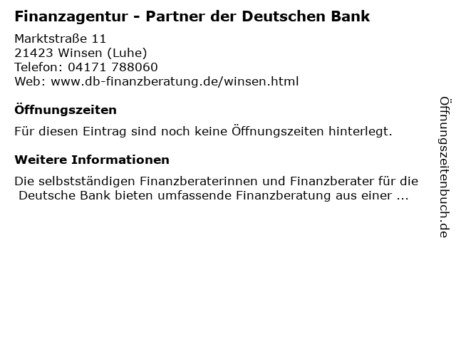 | Finanzagentur - Partner der Deutschen Bank anrufen | |