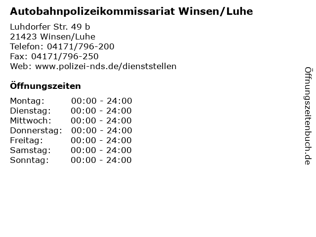 Branchen & Suchbegriffe zu Autobahnpolizeikommissariat Winsen/Luhe:autobahnpolizeikommissariat, ordnung, polizei, verkehr, winsen/luhe |