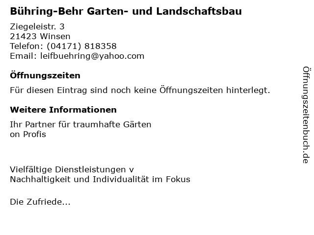| Bühring-Behr Garten- und Landschaftsbau anrufen | |