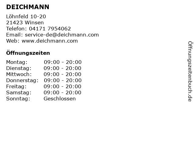 | Öffnungszeiten DEICHMANN in Winsen anzeigen | |