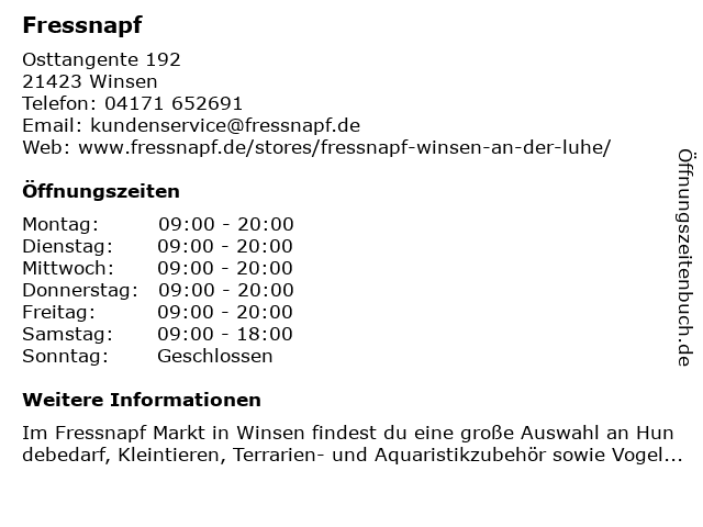 | Öffnungszeiten Fressnapf in Winsen anzeigen | |