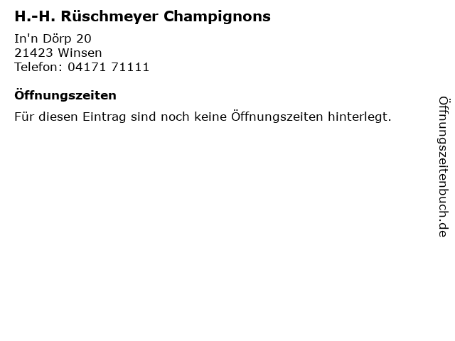 | Telefonnummer H.-H. Rüschmeyer Champignons in Winsen (04171 71111) anrufen | |