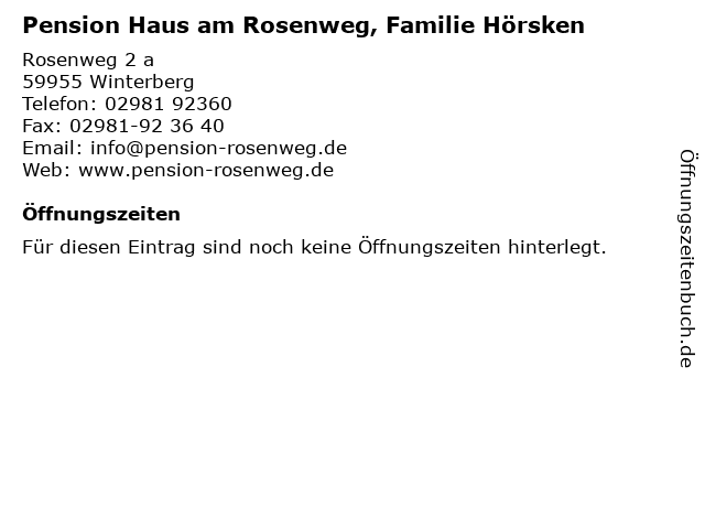 Branchen & Suchbegriffe zu Pension Haus am Rosenweg, Familie Hörsken:familie, ferienwohnungsvermietung, haus, hörsken, pension, pensionen, rosenweg, vermittlungen |