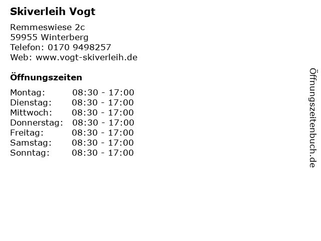 | Öffnungszeiten Skiverleih Vogt in Winterberg anzeigen | |