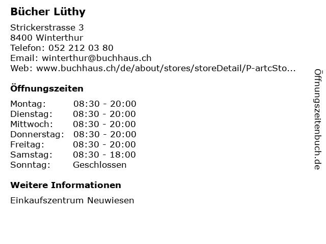 | Öffnungszeiten Bücher Lüthy in Winterthur anzeigen | |