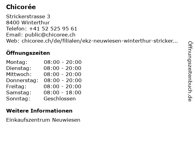 | Öffnungszeiten Chicorée in Winterthur anzeigen | |