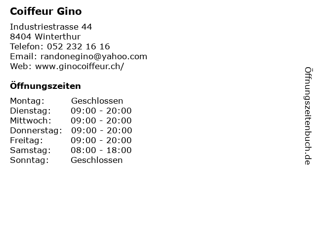 | Öffnungszeiten Coiffeur Gino in Winterthur anzeigen | |