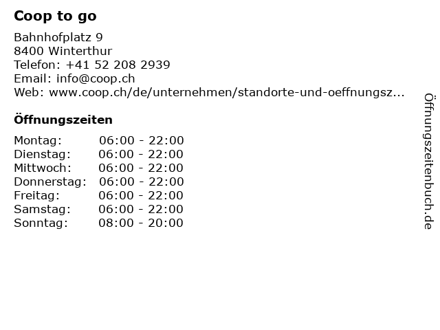 | Öffnungszeiten Coop to go in Winterthur anzeigen | |