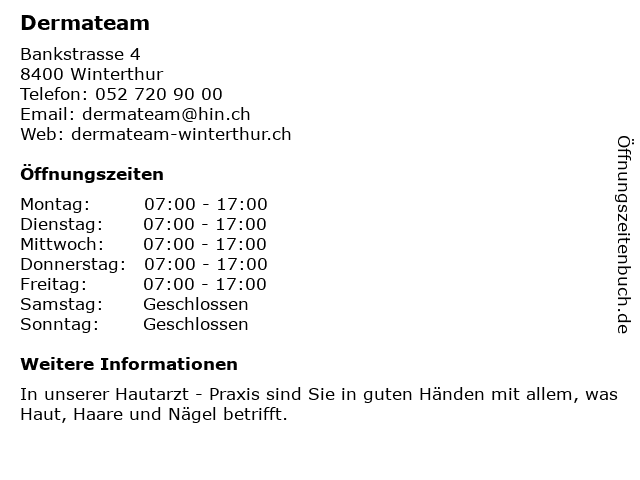 | Öffnungszeiten Dermateam in Winterthur anzeigen | |
