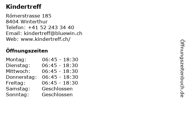 | Öffnungszeiten Kindertreff in Winterthur anzeigen | |