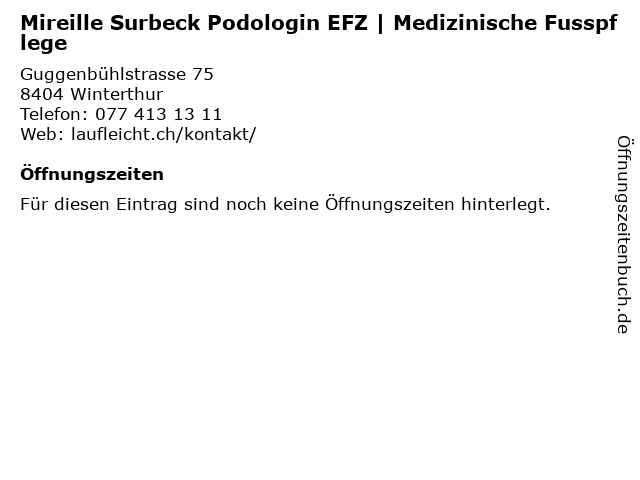 | Mireille Surbeck Podologin EFZ | Medizinische Fusspflege anrufen | |