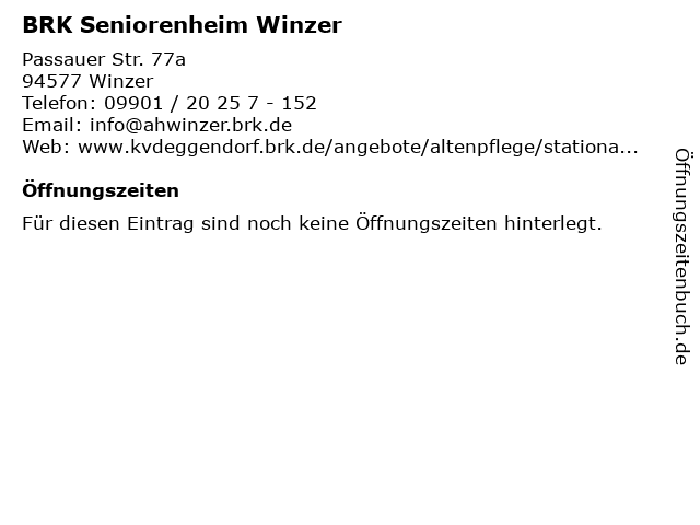 | Öffnungszeiten BRK Seniorenheim Winzer in Winzer anzeigen | |