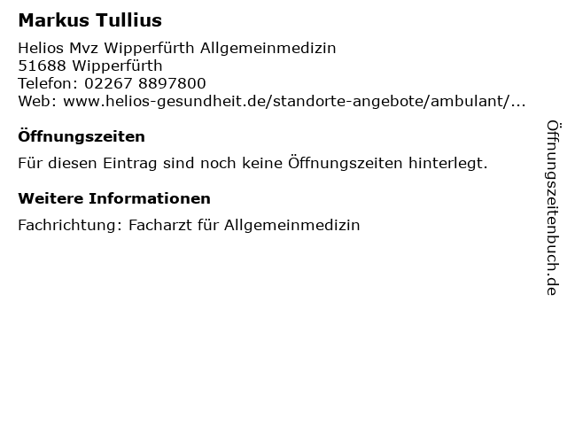 | Öffnungszeiten Markus Tullius in Wipperfürth anzeigen | |