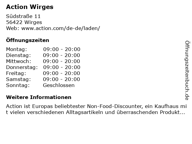 | Öffnungszeiten Action Wirges in Wirges anzeigen | |
