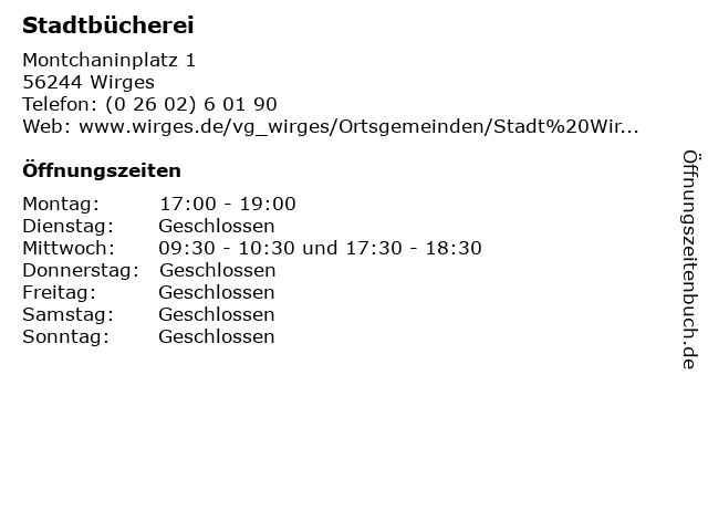 | Öffnungszeiten Stadtbücherei in Wirges anzeigen | |