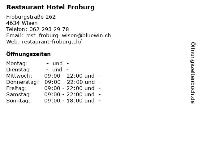 | Öffnungszeiten Restaurant Hotel Froburg in Wisen anzeigen | |