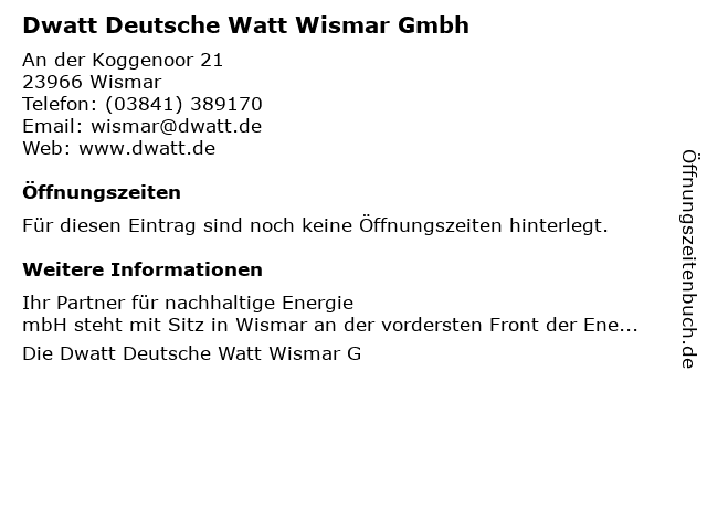 | Dwatt Deutsche Watt Wismar Gmbh anrufen | |