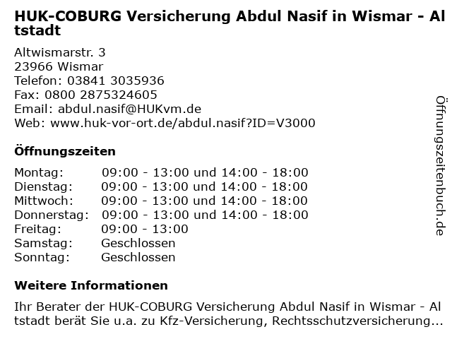 Branchen & Suchbegriffe zu HUK-COBURG Versicherung Abdul Nasif in Wismar - Altstadt:abdul, altersvorsorge, altstadt, autoversicherung, berufsunfähigkeitsversicherung, coburg, gebäude- und hausratsversicherung, huk, kfz-versicherung (motorrad), nasif, tierversicherung, versicherung, zahnmedizinische versicherung |