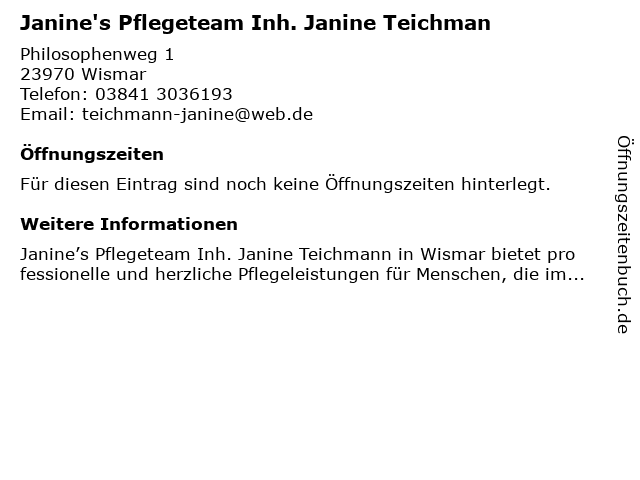 Janine's Pflegeteam Inh. Janine Teichman anrufen | |