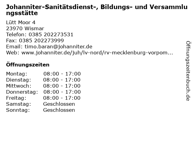 4 5 Johanniter-Unfall-Hilfe e.V. - Ambulanter Pflegedienst Poel (Entfernung: 8,71 km) Gemeindezentrum 4, 23999 Insel Poel 6 Bildungs- und Begegnungsstätte f. Kinder u. Jugendliche (Entfernung: 10,85 km) Hauptstr. 10, 18233 Alt Bukow |
