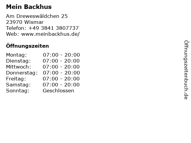 | Öffnungszeiten Mein Backhus in Wismar anzeigen | |