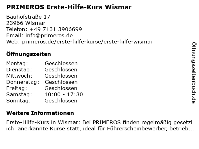 Branchen & Suchbegriffe zu PRIMEROS Erste-Hilfe-Kurs Wismar:erste, erste hilfe am unfallort, erste hilfe kurs, erste-hilfe, erste-hilfe-kurs, führerschein sehtest, herz-lungen-wiederbelebung, herzinfarkt, hilfe, kurs, primeros, schlaganfall, stabile seitenlage, verbandmaterial, weiterbildung |