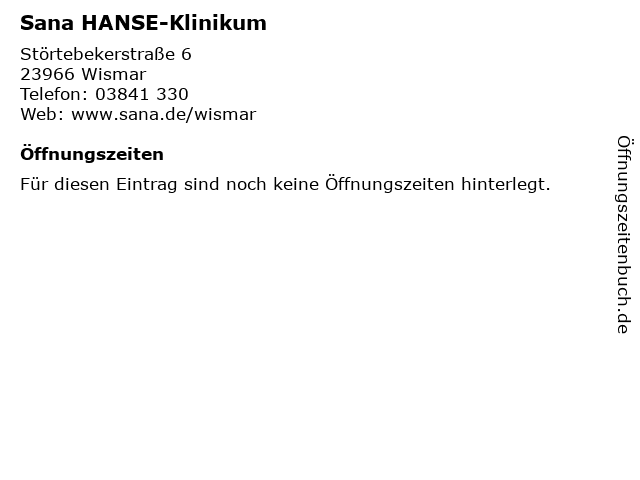 | Öffnungszeiten Sana HANSE-Klinikum in Wismar anzeigen | |