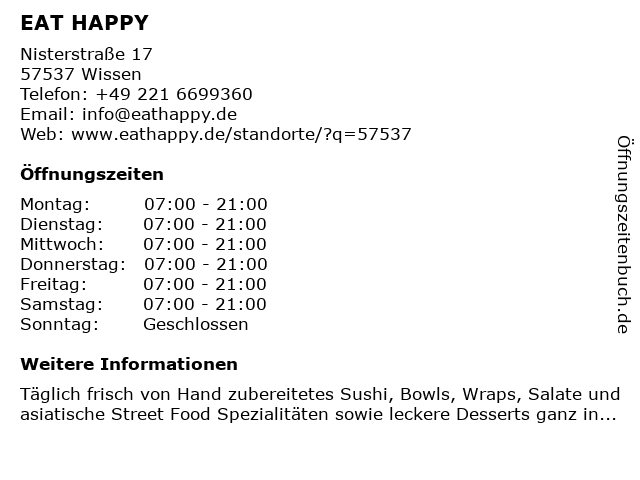 | Öffnungszeiten EAT HAPPY in Wissen anzeigen | |
