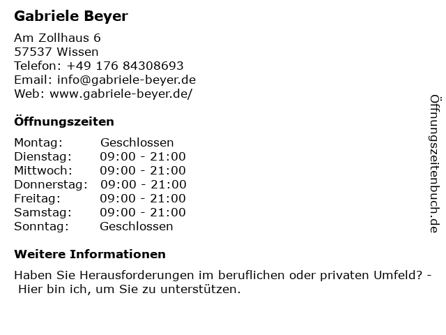 | Öffnungszeiten Gabriele Beyer in Wissen anzeigen | |