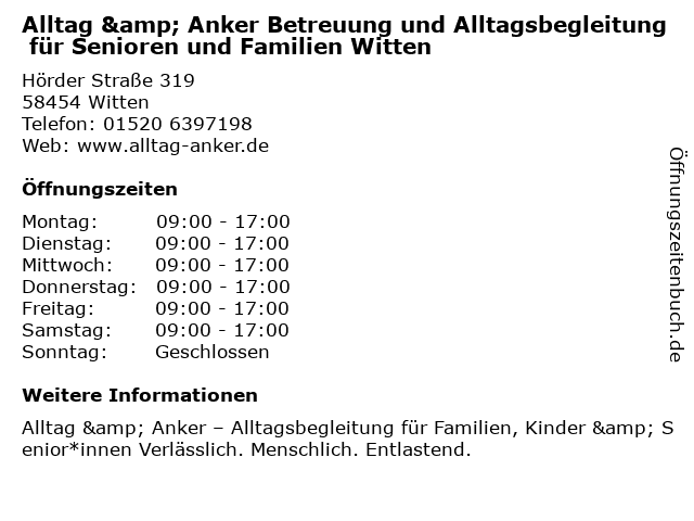 Branchen & Suchbegriffe zu Alltag & Anker Betreuung und Alltagsbegleitung für Senioren und Familien Witten:alltag, alltagsbegleitung, anker, betreuung, familien, senioren, witten |