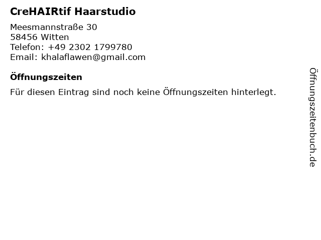 | Öffnungszeiten CreHAIRtif Haarstudio in Witten anzeigen | |