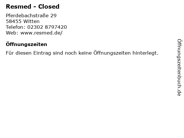 | Telefonnummer Resmed - Closed in Witten (02302 8797420) anrufen | |