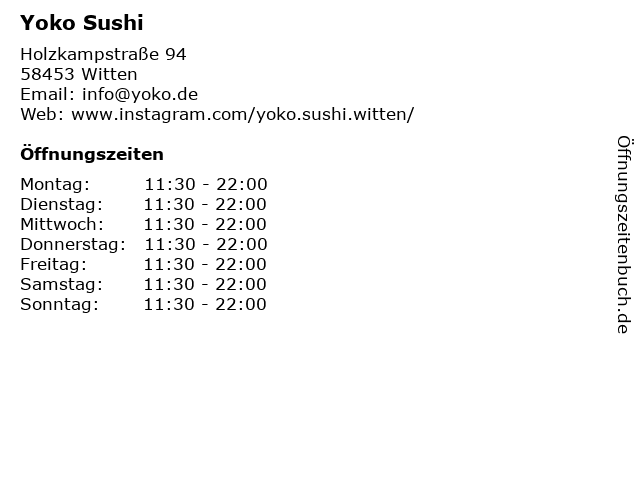 | Öffnungszeiten Yoko Sushi in Witten anzeigen | |