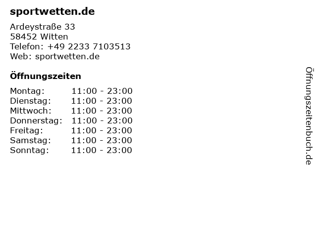 | Öffnungszeiten sportwetten.de in Witten anzeigen | |