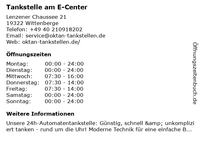 | Öffnungszeiten Tankstelle am E-Center in Wittenberge anzeigen | |