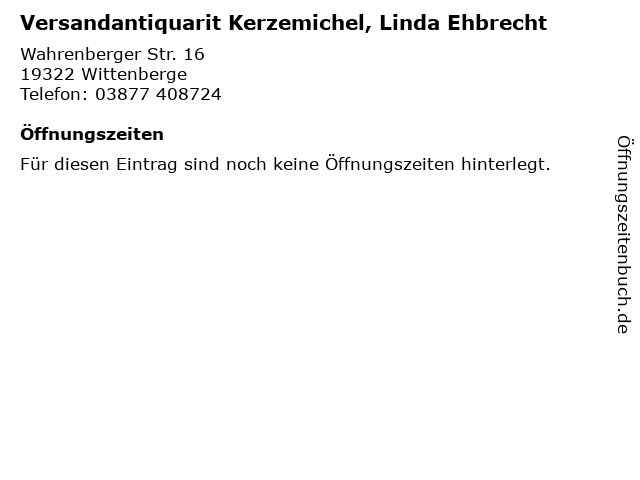 | Versandantiquarit Kerzemichel, Linda Ehbrecht anrufen | |