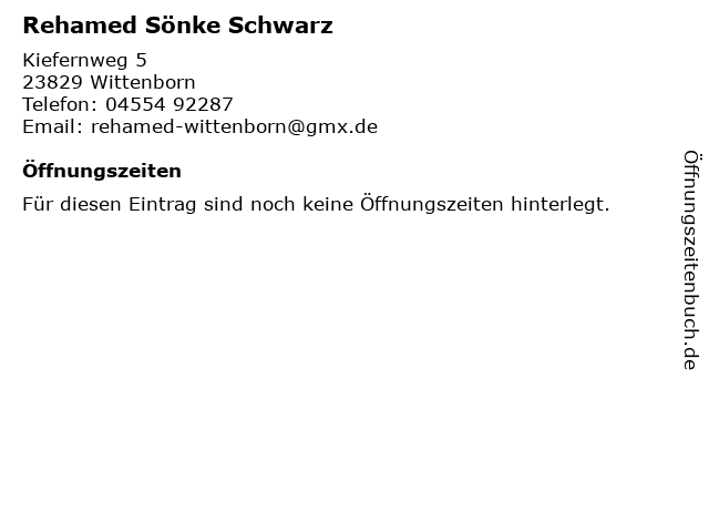 | Öffnungszeiten Rehamed Sönke Schwarz in Wittenborn anzeigen | |