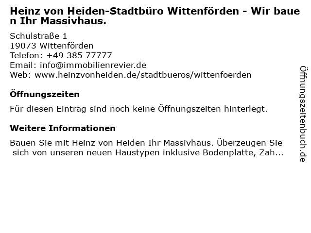 | Heinz von Heiden-Stadtbüro Wittenförden - Wir bauen Ihr Massivhaus. anrufen | |