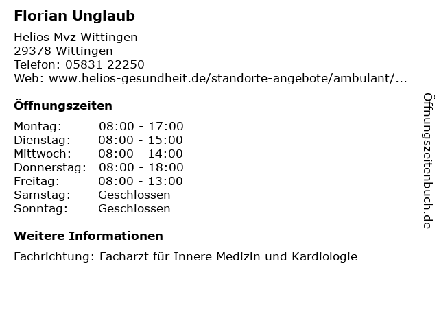 | Öffnungszeiten Florian Unglaub in Wittingen anzeigen | |