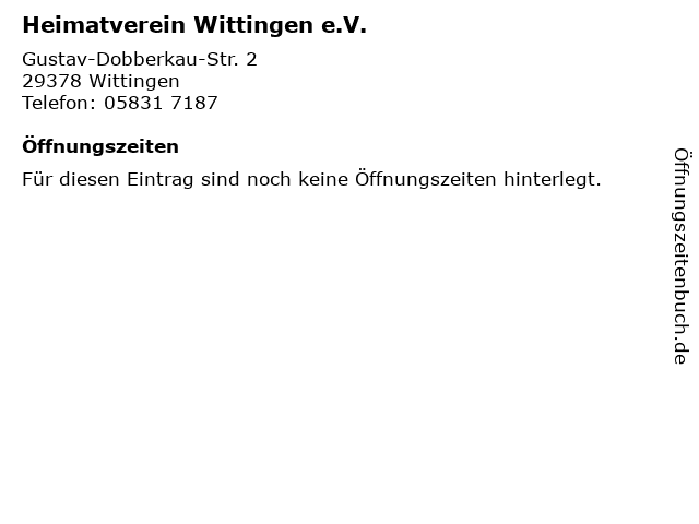 | Öffnungszeiten Heimatverein Wittingen e.V. in Wittingen anzeigen | |