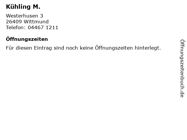 | Öffnungszeiten Kühling M. in Wittmund anzeigen | |