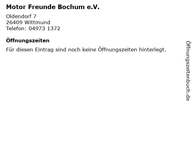 | Öffnungszeiten Motor Freunde Bochum e.V. in Wittmund anzeigen | |