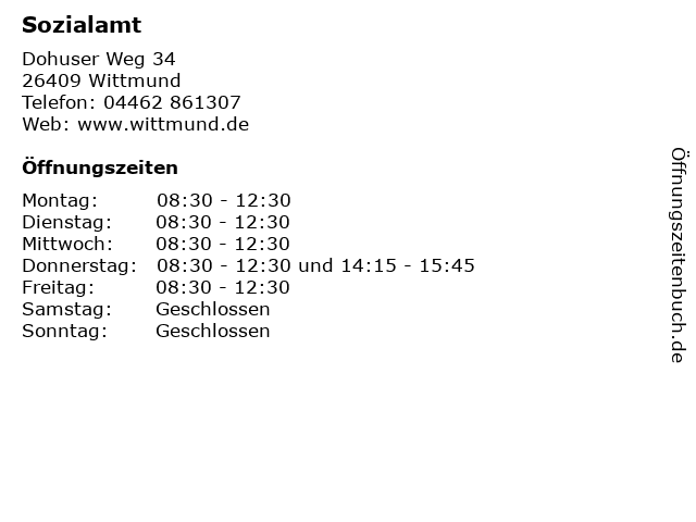 | Öffnungszeiten Sozialamt in Wittmund anzeigen | |