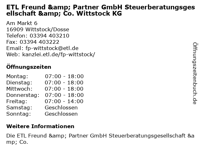 Branchen & Suchbegriffe zu ETL Freund & Partner GmbH Steuerberatungsgesellschaft & Co. Wittstock KG:etl, freund, partner, steuerberatungsgesellschaft |