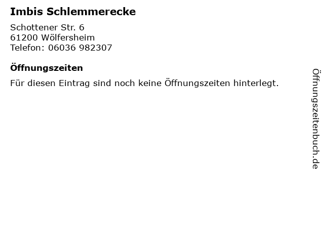| Öffnungszeiten Imbis Schlemmerecke in Wölfersheim anzeigen | |
